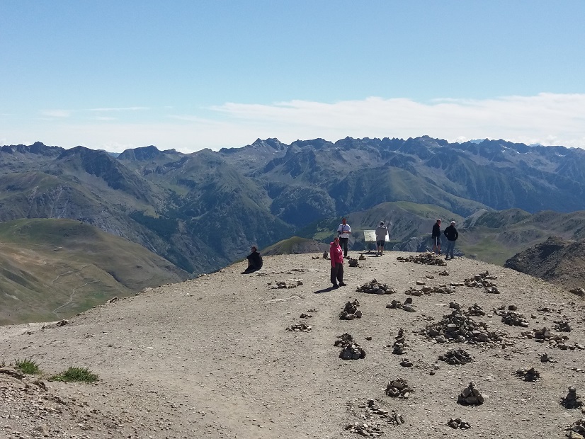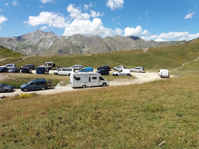 La pente à certains endroits pouvait atteindre 10%. Il faut dire que ce n’était pas le meilleur moment de se trouver là, un samedi, en plein mois d’août eu égard à la circulation. Et nous avons trouver le temps long pour arriver jusqu’au col. L’espace que nous découvrons permet de stationner sans encombre et sans difficulté. Et nous en profitons pour faire notre pause-déjeuner. En début d’après-midi, nous reprenons la route , non sans appréhension, ne sachant pas ce qui nous attendait en redescendant du col en direction de Barcelonnette. Or malgré quelques difficultés, le trajet s’en est trouvé moins impressionnant et on a pu rejoindre la vallée avec soulagement.