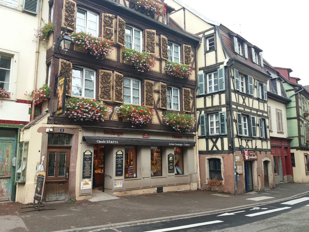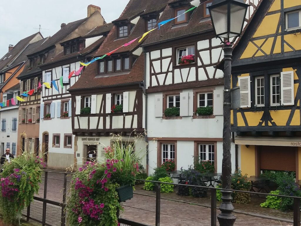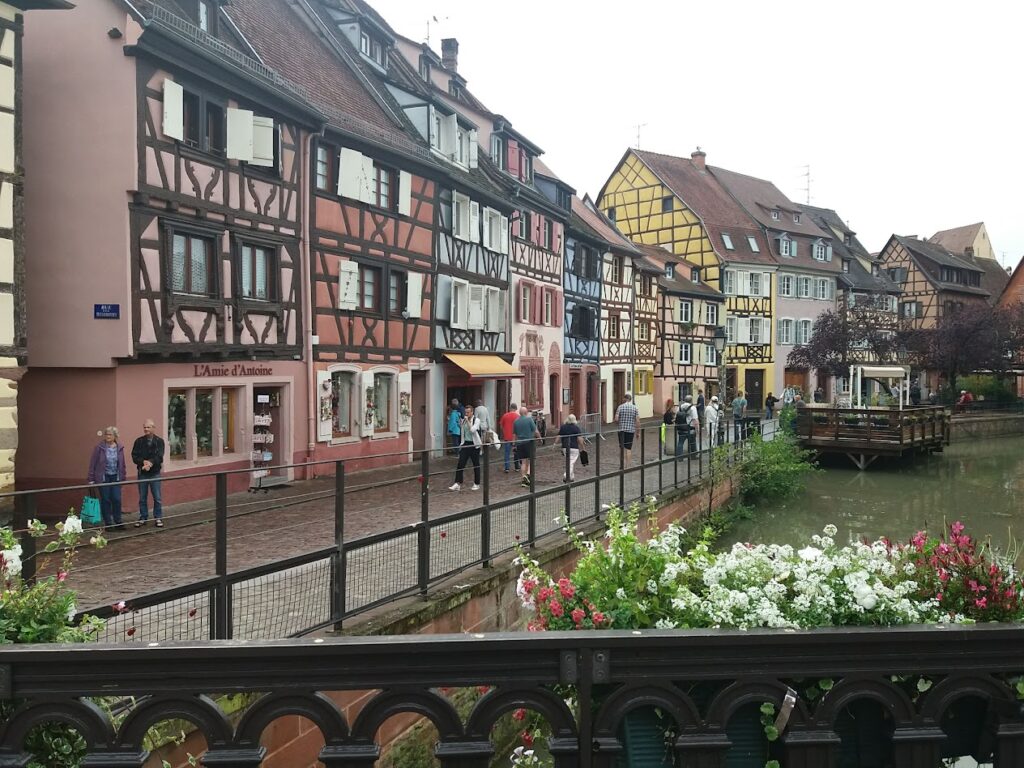 Le lendemain, nous visitons Colmar. Le temps est pluvieux. Nous stationnons au parking Onlypark près du port de plaisance et nous prenons le bus pour atteindre le cœur de la ville. Nous choisissons d’emprunter le petit train touristique qui serpente dans la cité. Un audioguide fait la description des lieux que nous traversons. De retour à la station de départ du train touristique, nous partons arpenter les rues du vieux Colmar et admirer au plus près l’architecture caractéristique des immeubles à devanture à colombages. Collégiale Saint Martin de Colmar. Maison Pfister. Grand Rue. Vieille ville de Colmar. La Petite Venise. A midi, nous déjeunons au restaurant Pub James’on.