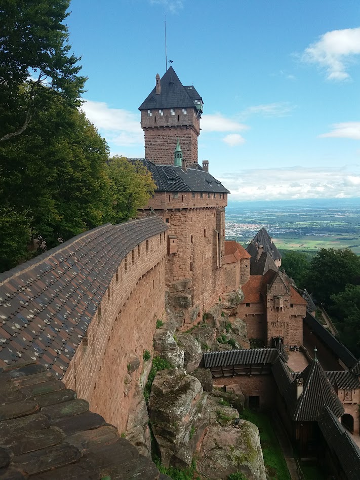 Nous poursuivons notre route vers le nord en suivant la « route des vins d’Alsace ». Nous traversons les villages de Riquewihr, Ribeauvillé, Bergheim, Roschwhir avant d’atteindre le Château du Haut-Kœnigsbourg que nous avions décidé de visiter. A midi, nous déjeunons sur le parking du château. Le château du Haut-Kœnigsbourg est un château médiéval datant du XIIè siècle. Il est aujourd’hui la propriété du département du Bas-Rhin. C’est le château le plus important et le plus visité d’Alsace. Entrée 12,00€ avec possibilité de louer un audioguide 5,00€. Celui-ci fait la description des différentes parties du château durant la visite. En 1633, pendant la guerre de 30 ans, le château subit sièges, pillages et incendies. Suivent 2 siècles d’abandon, puis ses ruines sont classées monument historique en 1862. En 1865, la ville de Sélestat acquière le château. En 1899, Sélestat offre les ruines du château à l’empereur Guillaume II suite à l’annexion de l’Alsace par l’Allemagne en 1871. Guillaume II entreprend la restauration du château en 1900. Elle dure 8 ans (de 1900 à 1908). En 1919, La France reprend l’Alsace et la Lorraine. Le Château devient propriété de l’Etat Français et gagne le statut de Palais National. En 2007, le château est transféré au Département du Bas-Rhin.