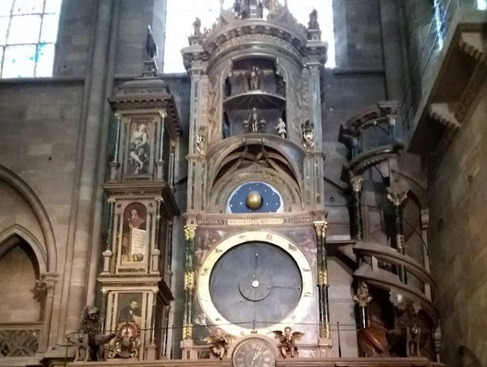 L’horloge astronomique jouit d’une réputation universelle et elle est un des centres d’attraction de la Cathédrale Notre-Dame de Strasbourg (contribution 4,00€). Tous les ans, plus de 3 millions de visiteurs viennent la contempler ! L’Horloge, chef d’œuvre de la Renaissance, est le produit d’une collaboration entre artistes, mathématiciens et techniciens. horlogers, sculpteurs, peintres et créateurs d’automates travaillèrent de concert. Le mécanisme actuel date de 1 842. L’Horloge attire surtout par le jeu de ses automates. Le jeu complet des automates est tous les jours, à 12h30 précises. La présentation de l’horloge astronomique a lieu tous les jours (exceptés les dimanches et les jours de fête lorsqu’une messe est célébrée à 11h00).