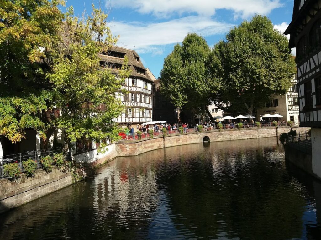 Très animé, le quartier touristique de la Petite France est connu pour ses rues pavées, ses canaux et ses maisons à colombages bien préservées comme la Maison des Tanneurs, construite en 1572. La terrasse située sur le toit du barrage Vauban, un pont-écluse couvert édifié au XVIIe siècle, offre une vue panoramique. Des restaurants alsaciens parsèment le quartier, tandis que les boutiques autour de la Grand’Rue vendent des vêtements et des souvenirs tels que de la vaisselle, du vin et des thés spéciaux.