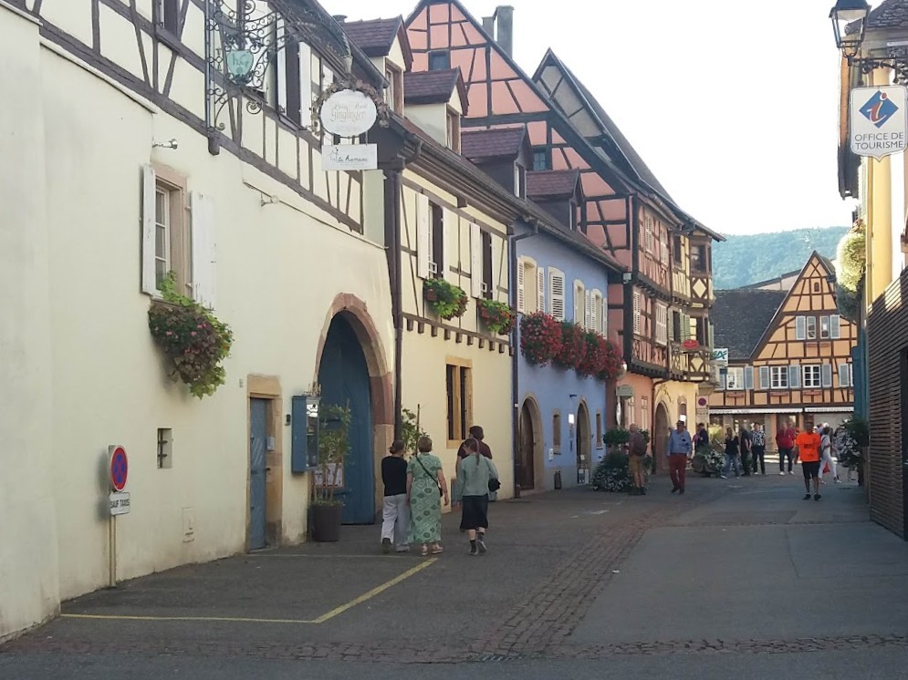 Nous atteignons Eguisheim dans le Haut-Rhin le dimanche après-midi vers 16h00 et nous nous orientons vers l’unique parking disponible nous permettant de visiter ce village classé « Plus beau village de France » et « Village préféré des Français ». Le prix du parking est de 11,00 € pour 4h00 ou 23,35 € pour 24h00. Nous choisissons de rester sur place pour la nuit en réglant 23,35 €. Village médiéval typiquement alsacien, Eguisheim dont les ruelles s’enroulent en cercles concentriques autour de son château est l’un des villages les plus visités d’Alsace. Eguisheim est le village de naissance du Pape Alsacienne LEON IX – Pape de 1048 à 1054.
