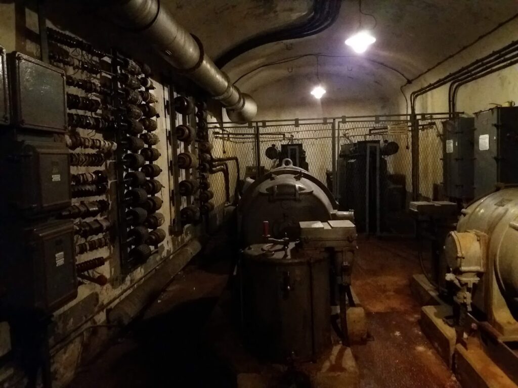 On retrouve ainsi, près de 20 mètres sous terre une infrastructure complexe avec les dortoirs pour la troupe, une cuisine, une infirmerie avec parfois un bloc opératoire, une salle des filtres (des filtres à air en cas d’attaque au gaz), une centrale de production d’électricité (tout dans un ouvrage fonctionne à l’électricité) pouvant compter jusqu’à quatre groupes électrogènes, des réserves de vivres, des réservoirs et citernes d’eau, de carburant, une soute à munitions, et parfois un magasin principal de munitions (dit magasin M 1). Tous ces organes se trouvent proches des entrées de l’ouvrage et sont reliés par galerie aux blocs de combat.
