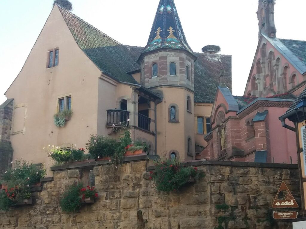 Notre aire d’étape se situe ce jour-là à Sigolheim Domaine FRITZ propriétaire Viticulteur. Cet exploitant a aménagé un espace gravillonné pouvant accueillir une dizaine de camping-cars avec branchement électrique pour chacun. Après notre installation sur site, nous sommes invités à une dégustation d’une dizaine des meilleurs crus du Domaine. Et le lendemain matin, une forte averse nous réveille vers 5h00. Mais lorsque nous nous levons, vers 8h00, le ciel est dégagé. Nous repartons après avoir acheté RIESLING et GEWURZTRAMINER à l’accueil du Domaine.