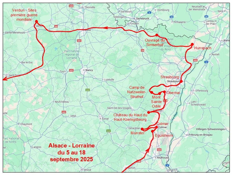 L’Alsace et la Lorraine du 5 au 18 septembre 2025 – 2750 km – 13 jours