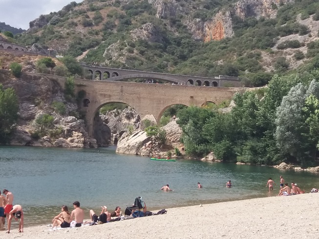 De retour au parking du pont du Diable, et avant de repartir, nous nous rendons sur les berges de l’Hérault pour admirer ce pont médiéval inscrit au patrimoine mondial de l’UNESCO. Le Pont du Diable aurait été construit en 873. Ce qui en fait un des plus vieux ponts médiévaux de France.