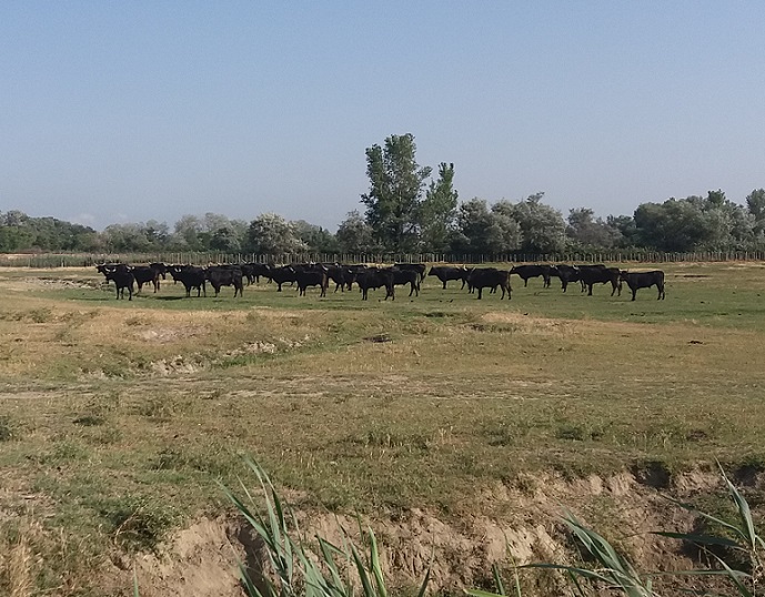 Notre chauffeur-guide fait une halte à mi-parcours pour nous raconter l’histoire du domaine de Méjanes et nous raconte avec force détails la vie d’une manade, l’élevage des taureaux et comment se déroule une course camarguaise.