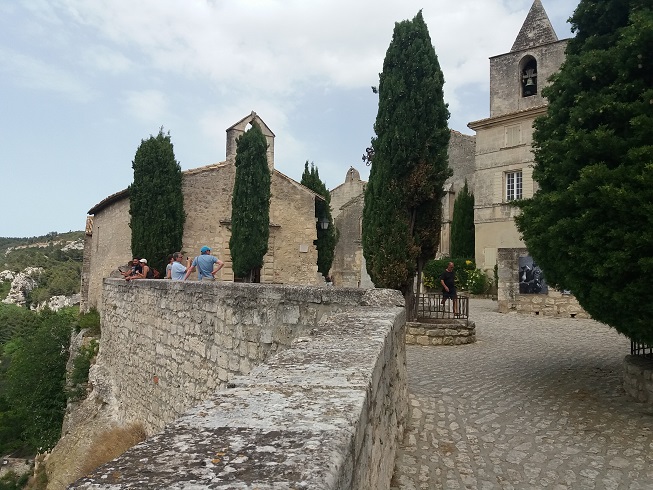 Profitant de ce jour en semaine et d’une saison estivale à peine commencée, nous avons pu nous garer assez facilement sur la route qui longe le village des Baux-de-Provence en contrebas.