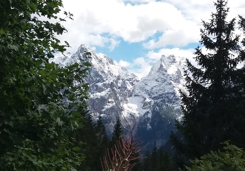 Le vendredi, nous nous réveillons sous un ciel nuageux, mais qui se dégage peu à peu. Nous décidons donc de faire la route en sens inverse en repassant à Cortina d’Ampezzo (SR48) et cette fois-ci, nous pouvons admirer les majestueux sommets des Dolomites en nous arrêtant de temps à autre pour prendre des photos. Nous atteignons Auronzo et nous nous dirigeons ensuite vers le sud pour atteindre notre aire d’étape au « Pian del Cansiglio ». Paysage verdoyant et sauvage au milieu de nul part. Une aire de camping-car parfaitement aménagée (12 €/24h) en pleine nature ou évoluaient pas très loin de nous un troupeau d’une vingtaine de biches ou peut-être davantage. Paysage magnifique avec en fond sonore le brame du cerf.
