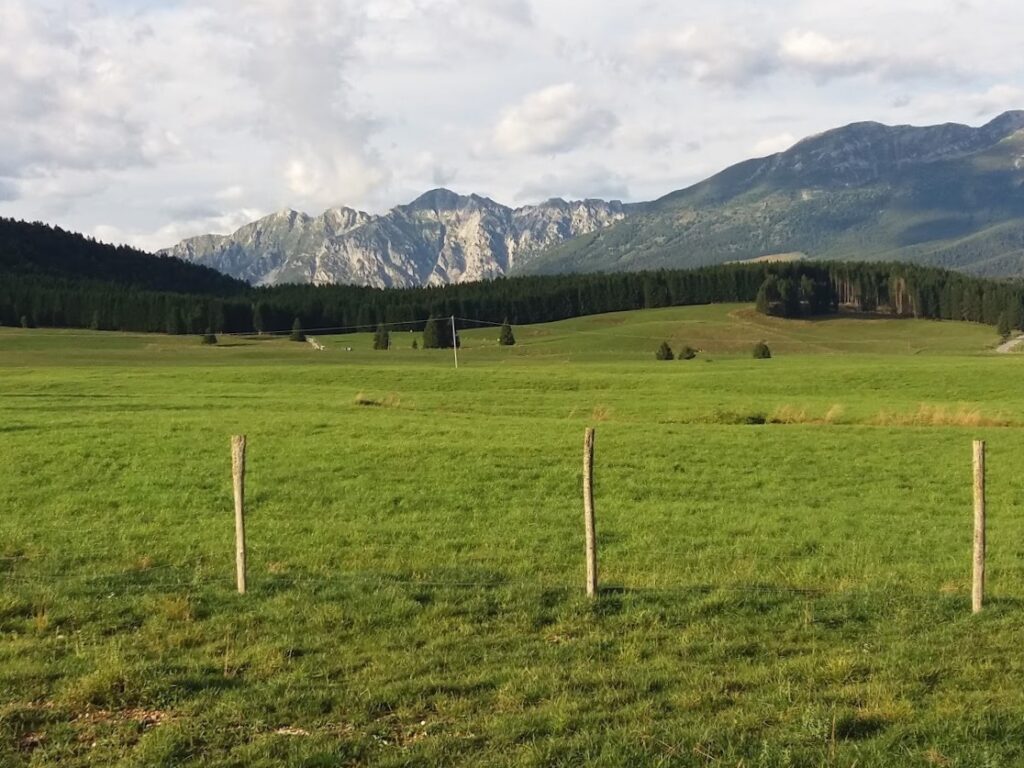 Panorama depuis notre aire d’étape de Pian del Cansiglio. Dans le lointain les biches et les cerfs