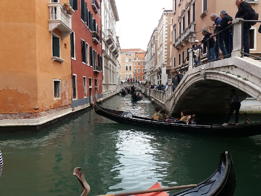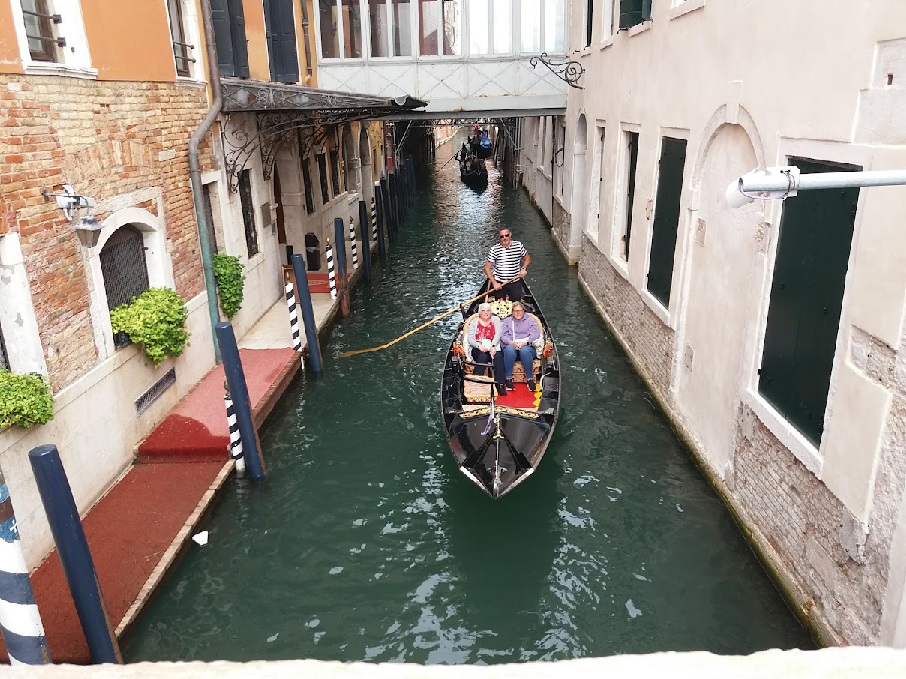 Le samedi nous continuons vers le sud pour rejoindre Venise et l’aire d’étape de San Guiliano à quelques 200 m de l’embarcadère où nous avions décider de prendre le bateau pour nous rendre à Venise le lendemain matin. Une liaison existait également par le bus et le train, mais les stations se trouvaient à environ 1100 m de notre parking. Arrivés de bonne heure dans l’après-midi, nous allons flâner au bord de la lagune. Le dimanche matin, nous nous levons assez de bonne heure pour prendre le premier bateau; celui de 9h00. Le temps est plutôt beau, mais couvert. Le trajet dure environ 20 mn. Lorsque nous débarquons, nous achetons un forfait pour la journée afin d’utiliser les nombreuses navettes fluviales qui sillonne l’archipel (appelées vaporetti), et nous nous rendons avec l’une d’entres elles sur la rive opposée pour rejoindre la Place Saint-Marc et admirer l’architecture de la cathédrale et des Immeubles environnants. Nous sillonnons les ruelles étroites de la cité des Doges en passant d’un îlot à un autre en franchissant plusieurs ponts sous lesquelles passaient les gondoles. A midi, nous déjeunons dans un petits restaurant. Après une journée passée à arpenter la « Sérénissime », nous regagnons notre aire de stationnement par le bateau de 17h00.