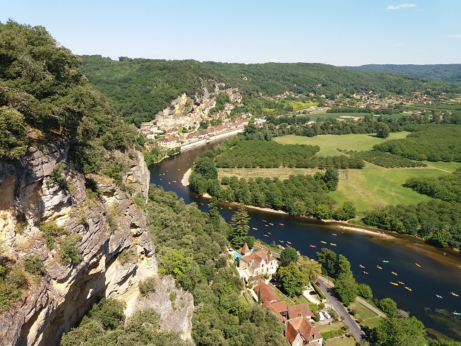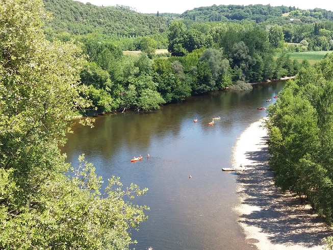 Sur les hauteurs du Village de Carlux se dressent les imposantes ruines du château. Durant la Guerre de « Cent ans » (1337-1453) le château est passé des Français aux Anglais et inversement et il fut incendié et restauré à plusieurs reprises. Panorama grandiose sur la vallée de la Dordogne. Après un arrêt pour visiter le Château de Carlux, nous suivons la vallée de la Dordogne, et nous faisons une halte au cingle de Montfort. Il s’agit d’un exceptionnel panorama sur la vallée de la Dordogne et sur le château de Montfort. Il n’y a pas beaucoup de place pour stationner, juste un muret ! On peut apprécier la végétation dense à perte de vue et admirer les canoës qui voguent au gré de leur envie et tout simplement profiter de l’instant!