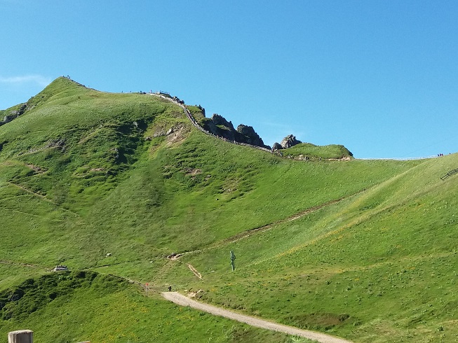 Le lendemain matin, nous prenons la direction du Puy Mary. Arrivé au pied du massif, un écriteau nous indique que la route est interdite aux camping-cars de 0h00 à 12h45. Nous faisons alors demi-tour pour nous diriger vers le Puy de Sancy. Arrivant tardivement dans l’après-midi, nous décidons de monter au sommet par le téléphérique le lendemain matin.