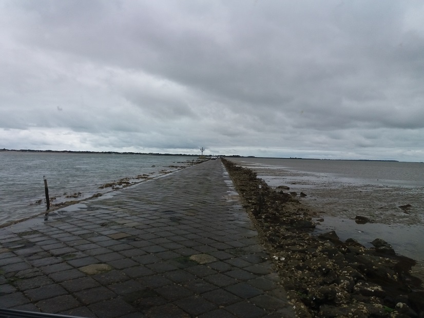 Nous avons pu voir pratiquement tous les spectacles dans la journée. Ainsi, nous sommes repartis dès le dimanche matin en direction de Noirmoutier. Après notre pause déjeuner sur l’aire de repos de Chambreteau, nous accédons à l’île de Noirmoutier par le « Passage du Gois » au moment où la mer venait juste de se retirer.
